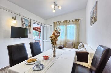 Ferienwohnung bietet Platz für 4 Gäste. Die Betten sind in Schlafzimmern, die es 2 gibt, innerhalb einer Gesamtfläche von 32m2, angeordnet. Die Gäste haben eine eigene Terrasse zur Verfügung, auf der sie in warmen Sommernächten genießen können. Das Apartment bietet Meerblick. Es ist erlaubt, Speisen auf dem Gemeinschafts-Grill vorzubereiten. In der Unterkunftseinheit besteht die Möglichkeit des Mitbringens von Haustieren gegen Aufpreis.