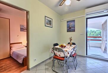 Ferienwohnung bietet Platz für 4 Gäste. Die Betten sind in Schlafzimmern, die es 2 gibt, innerhalb einer Gesamtfläche von 32m2, angeordnet. Die Gäste haben eine eigene Terrasse zur Verfügung, auf der sie in warmen Sommernächten genießen können. Das Apartment bietet Meerblick. Es ist erlaubt, Speisen auf dem Gemeinschafts-Grill vorzubereiten. In der Unterkunftseinheit besteht die Möglichkeit des Mitbringens von Haustieren gegen Aufpreis.