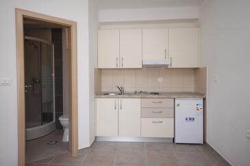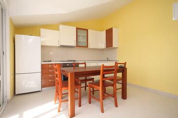 Ferienwohnung bietet Platz für 6 Gäste. Die Betten sind in Schlafzimmern, die es 2 gibt, und in Wohnzimmer, innerhalb einer Gesamtfläche von 59m2, angeordnet. Die Gäste haben eine eigene Terrasse zur Verfügung, auf der sie in warmen Sommernächten genießen können. Das Apartment bietet Meerblick. Es ist erlaubt, Speisen auf dem Gemeinschafts-Grill vorzubereiten. In der Unterkunftseinheit besteht die Möglichkeit des Mitbringens von Haustieren gegen Aufpreis.