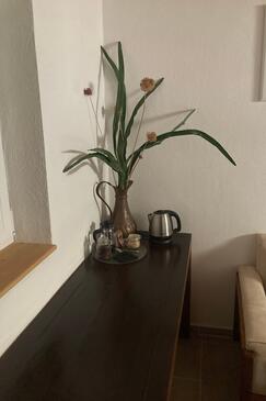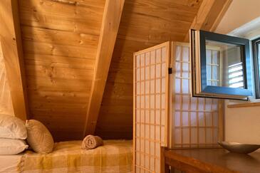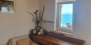 Haus bietet Platz für 8 Gäste. Die Betten sind in Schlafzimmern, die es 3 gibt, und in Wohnzimmer, innerhalb einer Gesamtfläche von 76m2, angeordnet. Die Gäste haben eine eigene Terrasse zur Verfügung, auf der sie in warmen Sommernächten genießen können. Das Haus bietet Meerblick. Für vollen Genuss und Entspannung gibt es einen privaten Grill für Gäste dieser Unterkunft. Während ihres Aufenthalts können sich Gäste im privaten Schwimmbad entspannen. In der Unterkunftseinheit besteht die Möglichkeit des Mitbringens von Haustieren gegen Aufpreis. Räume der gebuchten Unterkunftseinheit werden nicht in eine Ganze verbunden.
