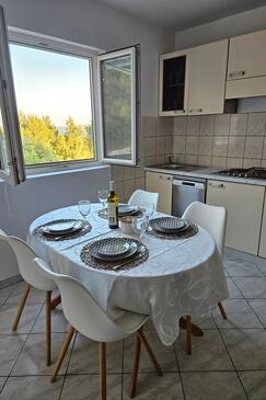 Ferienwohnung bietet Platz für 6 Gäste. Die Betten sind in Schlafzimmern, die es 2 gibt, und in Wohnzimmer, innerhalb einer Gesamtfläche von 43m2, angeordnet. Die Gäste haben eine eigene Terrasse zur Verfügung, auf der sie in warmen Sommernächten genießen können. Das Apartment bietet Meerblick. Es ist erlaubt, Speisen auf dem Gemeinschafts-Grill vorzubereiten. In der Unterkunftseinheit besteht die Möglichkeit des Mitbringens von Haustieren gegen Aufpreis.