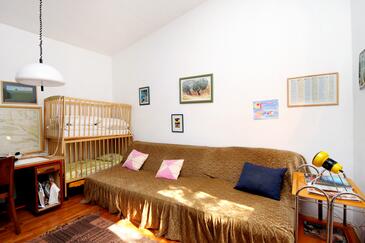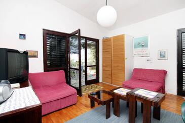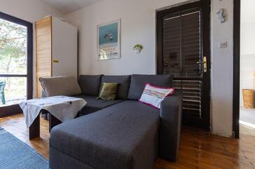 Haus bietet Platz für 6 Gäste. Die Betten sind in Schlafzimmern, die es 2 gibt, und in Wohnzimmer und Esszimmer, innerhalb einer Gesamtfläche von 61m2, angeordnet. Die Gäste haben eine eigene Terrasse zur Verfügung, auf der sie in warmen Sommernächten genießen können. Das Haus bietet Meerblick. Es ist erlaubt, Speisen auf dem Gemeinschafts-Grill vorzubereiten. In der Unterkunftseinheit besteht die Möglichkeit des Mitbringens von Haustieren, und die Dienstleistung ist im Preis der Unterkunft enthalten.