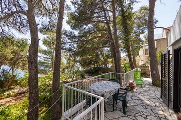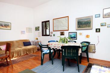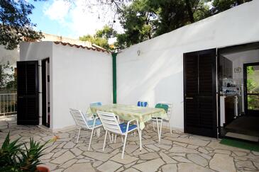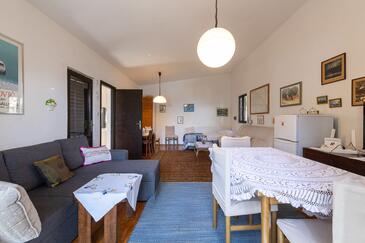 Haus bietet Platz für 6 Gäste. Die Betten sind in Schlafzimmern, die es 2 gibt, und in Wohnzimmer und Esszimmer, innerhalb einer Gesamtfläche von 61m2, angeordnet. Die Gäste haben eine eigene Terrasse zur Verfügung, auf der sie in warmen Sommernächten genießen können. Das Haus bietet Meerblick. Es ist erlaubt, Speisen auf dem Gemeinschafts-Grill vorzubereiten. In der Unterkunftseinheit besteht die Möglichkeit des Mitbringens von Haustieren, und die Dienstleistung ist im Preis der Unterkunft enthalten.