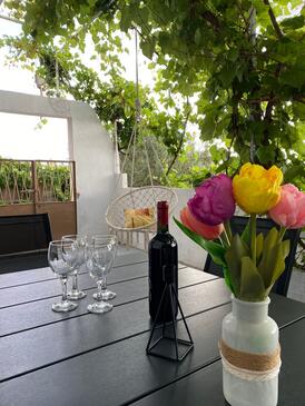 Ferienwohnung bietet Platz für 5 Gäste. Die Betten sind in Schlafzimmern, die es 1 gibt, und in Wohnzimmer, innerhalb einer Gesamtfläche von 55m2, angeordnet. Die Gäste haben eine eigene Terrasse zur Verfügung, auf der sie in warmen Sommernächten genießen können. Das Apartment bietet Meerblick. In der Unterkunftseinheit besteht die Möglichkeit des Mitbringens von Haustieren gegen Aufpreis.