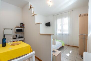 Ferienwohnung bietet Platz für 4 Gäste. Die Betten sind in Schlafzimmern, die es 2 gibt, innerhalb einer Gesamtfläche von 41m2, angeordnet. Die Gäste haben eine eigene Terrasse zur Verfügung, auf der sie in warmen Sommernächten genießen können. Es ist erlaubt, Speisen auf dem Gemeinschafts-Grill vorzubereiten. In der Unterkunftseinheit besteht die Möglichkeit des Mitbringens von Haustieren gegen Aufpreis. In der gebuchten Unterkunftseinheit zahlt man am Ort ein Depositum ( der Preis ist an der Internetseite angeführt ).