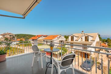 Ferienwohnung bietet Platz für 4 Gäste. Die Betten sind in Schlafzimmern, die es 1 gibt, und in Wohnzimmer, innerhalb einer Gesamtfläche von 41m2, angeordnet. Die Gäste haben eine eigene Terrasse zur Verfügung, auf der sie in warmen Sommernächten genießen können. Das Apartment bietet Meerblick. Es ist erlaubt, Speisen auf dem Gemeinschafts-Grill vorzubereiten.