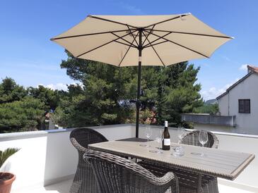 Ferienwohnung bietet Platz für 4 Gäste. Die Betten sind in Schlafzimmern, die es 1 gibt, und in Wohnzimmer, innerhalb einer Gesamtfläche von 41m2, angeordnet. Die Gäste haben eine eigene Terrasse zur Verfügung, auf der sie in warmen Sommernächten genießen können. Das Apartment bietet Meerblick. Es ist erlaubt, Speisen auf dem Gemeinschafts-Grill vorzubereiten.