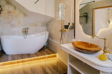 Haus bietet Platz für 6 Gäste. Die Betten sind in Schlafzimmern, die es 3 gibt, innerhalb einer Gesamtfläche von 166m2, angeordnet. Die Gäste haben eine eigene Terrasse zur Verfügung, auf der sie in warmen Sommernächten genießen können. Für vollen Genuss und Entspannung gibt es einen privaten Grill für Gäste dieser Unterkunft. Während ihres Aufenthalts können Gäste das gemeinsam zur Nutzung stehende Schwimmbad benutzen.