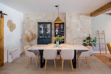 Haus bietet Platz für 6 Gäste. Die Betten sind in Schlafzimmern, die es 3 gibt, innerhalb einer Gesamtfläche von 166m2, angeordnet. Die Gäste haben eine eigene Terrasse zur Verfügung, auf der sie in warmen Sommernächten genießen können. Für vollen Genuss und Entspannung gibt es einen privaten Grill für Gäste dieser Unterkunft. Während ihres Aufenthalts können Gäste das gemeinsam zur Nutzung stehende Schwimmbad benutzen.