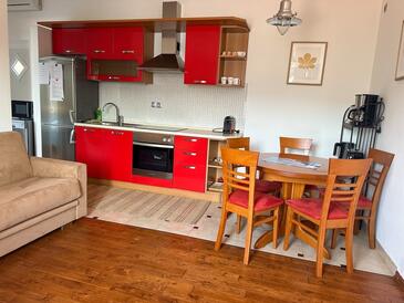 Ferienwohnung bietet Platz für 4 Gäste. Die Betten sind in Schlafzimmern, die es 1 gibt, und in Wohnzimmer, innerhalb einer Gesamtfläche von 49m2, angeordnet. Die Gäste haben eine eigene Terrasse zur Verfügung, auf der sie in warmen Sommernächten genießen können. Das Apartment bietet Meerblick. In der Unterkunftseinheit besteht die Möglichkeit des Mitbringens von Haustieren gegen Aufpreis.