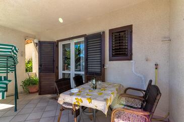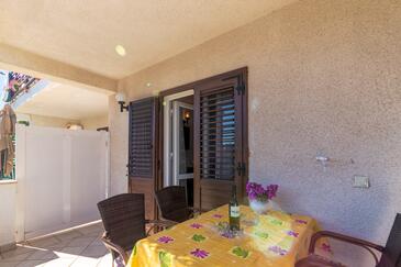 Ferienwohnung bietet Platz für 2 Gäste. Die Betten sind in Schlafzimmern, die es 1 gibt, innerhalb einer Gesamtfläche von 42m2, angeordnet. Die Gäste haben eine eigene Terrasse zur Verfügung, auf der sie in warmen Sommernächten genießen können. Das Apartment bietet Meerblick. Es ist erlaubt, Speisen auf dem Gemeinschafts-Grill vorzubereiten.