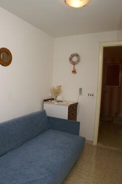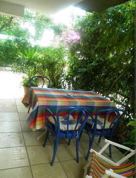Ferienwohnung bietet Platz für 2 Gäste. Die Betten sind in Schlafzimmern, die es 1 gibt, innerhalb einer Gesamtfläche von 42m2, angeordnet. Die Gäste haben eine eigene Terrasse zur Verfügung, auf der sie in warmen Sommernächten genießen können. Das Apartment bietet Meerblick. Es ist erlaubt, Speisen auf dem Gemeinschafts-Grill vorzubereiten.