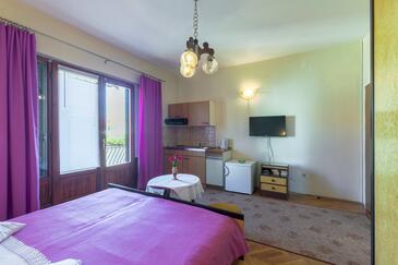 Ferienwohnung bietet Platz für 4 Gäste. Die Betten sind in Schlafzimmern, die es 2 gibt, innerhalb einer Gesamtfläche von 42m2, angeordnet. Die Gäste haben eine eigene Terrasse zur Verfügung, auf der sie in warmen Sommernächten genießen können. Es ist erlaubt, Speisen auf dem Gemeinschafts-Grill vorzubereiten.