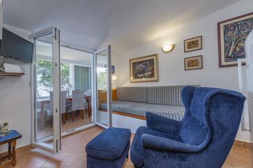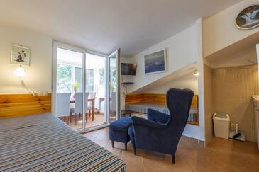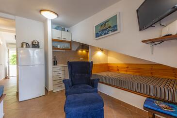 Ferienwohnung bietet Platz für 4 Gäste. Die Betten sind in Schlafzimmern, die es 1 gibt, und in Wohnzimmer, innerhalb einer Gesamtfläche von 28m2, angeordnet. Die Gäste haben eine eigene Terrasse zur Verfügung, auf der sie in warmen Sommernächten genießen können. Das Apartment bietet Meerblick. Es ist erlaubt, Speisen auf dem Gemeinschafts-Grill vorzubereiten. In der gebuchten Unterkunftseinheit zahlt man am Ort ein Depositum ( der Preis ist an der Internetseite angeführt ).
