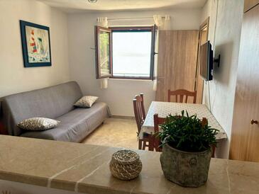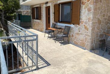 Ferienwohnung bietet Platz für 4 Gäste. Die Betten sind in Schlafzimmern, die es 2 gibt, innerhalb einer Gesamtfläche von 45m2, angeordnet. Die Gäste haben eine eigene Terrasse zur Verfügung, auf der sie in warmen Sommernächten genießen können. Das Apartment bietet Meerblick. Es ist erlaubt, Speisen auf dem Gemeinschafts-Grill vorzubereiten.
