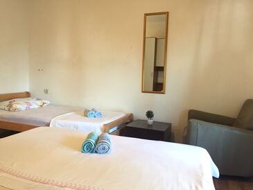 Studio bietet Platz für 3 Gäste. Die Betten sind in Schlafzimmern, die es 1 gibt, innerhalb einer Gesamtfläche von 18m2, angeordnet. Die Gäste haben eine eigene Terrasse zur Verfügung, auf der sie in warmen Sommernächten genießen können. Das Studio-Apartment bietet Meerblick. Es ist erlaubt, Speisen auf dem Gemeinschafts-Grill vorzubereiten.