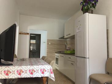 Ferienwohnung bietet Platz für 6 Gäste. Die Betten sind in Schlafzimmern, die es 2 gibt, innerhalb einer Gesamtfläche von 43m2, angeordnet. Die Gäste haben eine eigene Terrasse zur Verfügung, auf der sie in warmen Sommernächten genießen können. Das Apartment bietet Meerblick. Es ist erlaubt, Speisen auf dem Gemeinschafts-Grill vorzubereiten.