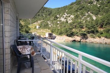 Ferienwohnung bietet Platz für 6 Gäste. Die Betten sind in Schlafzimmern, die es 2 gibt, innerhalb einer Gesamtfläche von 43m2, angeordnet. Die Gäste haben eine eigene Terrasse zur Verfügung, auf der sie in warmen Sommernächten genießen können. Das Apartment bietet Meerblick. Es ist erlaubt, Speisen auf dem Gemeinschafts-Grill vorzubereiten.