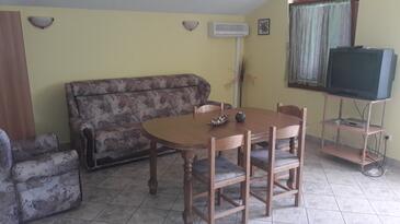 Ferienwohnung bietet Platz für 5 Gäste. Die Betten sind in Schlafzimmern, die es 2 gibt, und in Wohnzimmer, innerhalb einer Gesamtfläche von 57m2, angeordnet. Die Gäste haben eine eigene Terrasse zur Verfügung, auf der sie in warmen Sommernächten genießen können. Das Apartment bietet Meerblick. Es ist erlaubt, Speisen auf dem Gemeinschafts-Grill vorzubereiten. In der Unterkunftseinheit besteht die Möglichkeit des Mitbringens von Haustieren, und die Dienstleistung ist im Preis der Unterkunft enthalten.