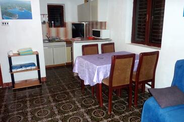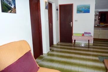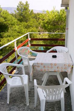 Ferienwohnung bietet Platz für 5 Gäste. Die Betten sind in Schlafzimmern, die es 2 gibt, und in Esszimmer, innerhalb einer Gesamtfläche von 43m2, angeordnet. Die Gäste haben eine eigene Terrasse zur Verfügung, auf der sie in warmen Sommernächten genießen können. Das Apartment bietet Meerblick. Es ist erlaubt, Speisen auf dem Gemeinschafts-Grill vorzubereiten.