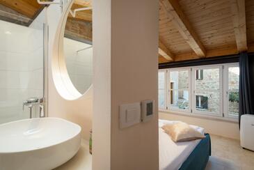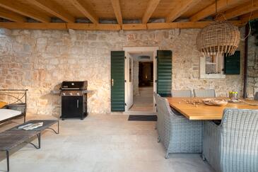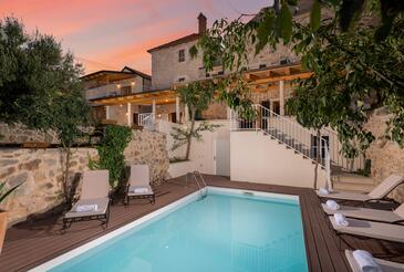 Haus bietet Platz für 8 Gäste. Die Betten sind in Schlafzimmern, die es 3 gibt, innerhalb einer Gesamtfläche von 105m2, angeordnet. Die Gäste haben eine eigene Terrasse zur Verfügung, auf der sie in warmen Sommernächten genießen können. Das Haus bietet Meerblick. Für vollen Genuss und Entspannung gibt es einen privaten Grill für Gäste dieser Unterkunft. Während ihres Aufenthalts können sich Gäste im privaten Schwimmbad entspannen. In der Unterkunftseinheit besteht die Möglichkeit des Mitbringens von Haustieren gegen Aufpreis.