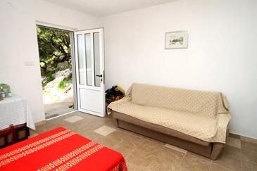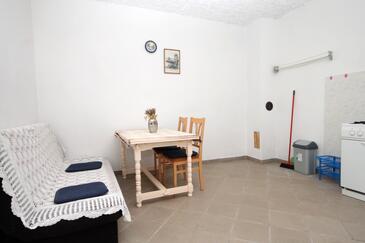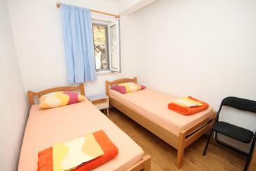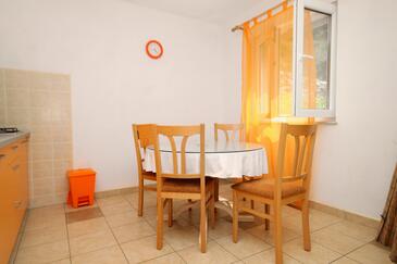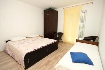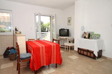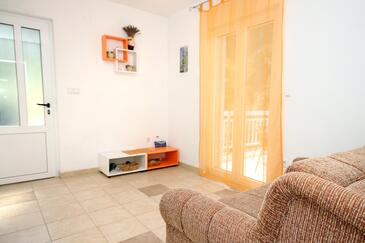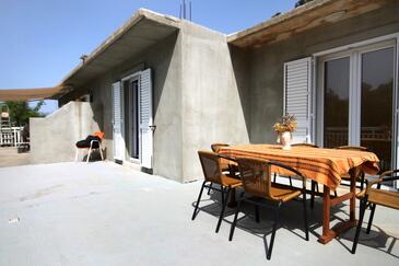 Ferienwohnung bietet Platz für 5 Gäste. Die Betten sind in Schlafzimmern, die es 2 gibt, und in Wohnzimmer, innerhalb einer Gesamtfläche von 51m2, angeordnet. Die Gäste haben eine eigene Terrasse zur Verfügung, auf der sie in warmen Sommernächten genießen können. Das Apartment bietet Meerblick. Es ist erlaubt, Speisen auf dem Gemeinschafts-Grill vorzubereiten.