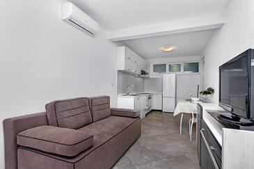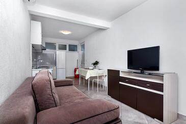 Ferienwohnung bietet Platz für 5 Gäste. Die Betten sind in Schlafzimmern, die es 1 gibt, und in Wohnzimmer, innerhalb einer Gesamtfläche von 36m2, angeordnet. Die Gäste haben eine eigene Terrasse zur Verfügung, auf der sie in warmen Sommernächten genießen können. Das Apartment bietet Meerblick. Es ist erlaubt, Speisen auf dem Gemeinschafts-Grill vorzubereiten. In der Unterkunftseinheit besteht die Möglichkeit des Mitbringens von Haustieren gegen Aufpreis.