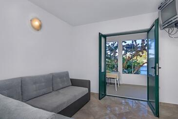 Ferienwohnung bietet Platz für 5 Gäste. Die Betten sind in Schlafzimmern, die es 1 gibt, und in Wohnzimmer, innerhalb einer Gesamtfläche von 36m2, angeordnet. Die Gäste haben eine eigene Terrasse zur Verfügung, auf der sie in warmen Sommernächten genießen können. Das Apartment bietet Meerblick. Es ist erlaubt, Speisen auf dem Gemeinschafts-Grill vorzubereiten. In der Unterkunftseinheit besteht die Möglichkeit des Mitbringens von Haustieren gegen Aufpreis.