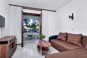 Ferienwohnung bietet Platz für 5 Gäste. Die Betten sind in Schlafzimmern, die es 1 gibt, und in Wohnzimmer, innerhalb einer Gesamtfläche von 36m2, angeordnet. Die Gäste haben eine eigene Terrasse zur Verfügung, auf der sie in warmen Sommernächten genießen können. Das Apartment bietet Meerblick. Es ist erlaubt, Speisen auf dem Gemeinschafts-Grill vorzubereiten. In der Unterkunftseinheit besteht die Möglichkeit des Mitbringens von Haustieren gegen Aufpreis.