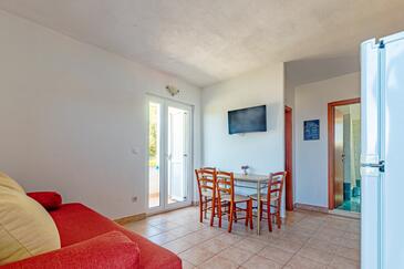 Ferienwohnung bietet Platz für 5 Gäste. Die Betten sind in Schlafzimmern, die es 2 gibt, innerhalb einer Gesamtfläche von 43m2, angeordnet. Die Gäste haben eine eigene Terrasse zur Verfügung, auf der sie in warmen Sommernächten genießen können. Das Apartment bietet Meerblick. Es ist erlaubt, Speisen auf dem Gemeinschafts-Grill vorzubereiten. In der Unterkunftseinheit besteht die Möglichkeit des Mitbringens von Haustieren, und die Dienstleistung ist im Preis der Unterkunft enthalten.