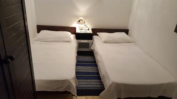 Ferienwohnung bietet Platz für 5 Gäste. Die Betten sind in Schlafzimmern, die es 2 gibt, und in Wohnzimmer, innerhalb einer Gesamtfläche von 34m2, angeordnet. Die Gäste haben eine eigene Terrasse zur Verfügung, auf der sie in warmen Sommernächten genießen können. Das Apartment bietet Meerblick. Es ist erlaubt, Speisen auf dem Gemeinschafts-Grill vorzubereiten.