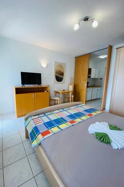Ferienwohnung bietet Platz für 4 Gäste. Die Betten sind in Schlafzimmern, die es 2 gibt, innerhalb einer Gesamtfläche von 38m2, angeordnet. Die Gäste haben eine eigene Terrasse zur Verfügung, auf der sie in warmen Sommernächten genießen können. Das Apartment bietet Meerblick. Es ist erlaubt, Speisen auf dem Gemeinschafts-Grill vorzubereiten. Während ihres Aufenthalts können Gäste das gemeinsam zur Nutzung stehende Schwimmbad benutzen. In der Unterkunftseinheit besteht die Möglichkeit des Mitbringens von Haustieren, und die Dienstleistung ist im Preis der Unterkunft enthalten.