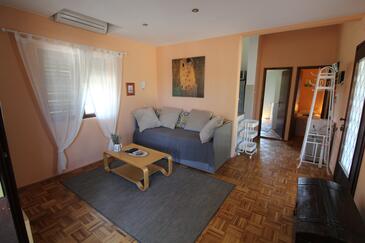 Haus bietet Platz für 6 Gäste. Die Betten sind in Schlafzimmern, die es 2 gibt, und in Wohnzimmer, innerhalb einer Gesamtfläche von 48m2, angeordnet. Die Gäste haben eine eigene Terrasse zur Verfügung, auf der sie in warmen Sommernächten genießen können. Für vollen Genuss und Entspannung gibt es einen privaten Grill für Gäste dieser Unterkunft. In der Unterkunftseinheit besteht die Möglichkeit des Mitbringens von Haustieren, und die Dienstleistung ist im Preis der Unterkunft enthalten.