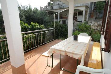 Ferienwohnung bietet Platz für 8 Gäste. Die Betten sind in Schlafzimmern, die es 3 gibt, innerhalb einer Gesamtfläche von 59m2, angeordnet. Die Gäste haben eine eigene Terrasse zur Verfügung, auf der sie in warmen Sommernächten genießen können. Das Apartment bietet Meerblick. Es ist erlaubt, Speisen auf dem Gemeinschafts-Grill vorzubereiten.