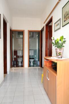 Ferienwohnung bietet Platz für 8 Gäste. Die Betten sind in Schlafzimmern, die es 3 gibt, innerhalb einer Gesamtfläche von 59m2, angeordnet. Die Gäste haben eine eigene Terrasse zur Verfügung, auf der sie in warmen Sommernächten genießen können. Das Apartment bietet Meerblick. Es ist erlaubt, Speisen auf dem Gemeinschafts-Grill vorzubereiten.