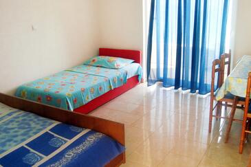 Ferienwohnung bietet Platz für 5 Gäste. Die Betten sind in Schlafzimmern, die es 2 gibt, innerhalb einer Gesamtfläche von 36m2, angeordnet. Die Gäste haben eine eigene Terrasse zur Verfügung, auf der sie in warmen Sommernächten genießen können. Das Apartment bietet Meerblick. Es ist erlaubt, Speisen auf dem Gemeinschafts-Grill vorzubereiten. In der Unterkunftseinheit besteht die Möglichkeit des Mitbringens von Haustieren gegen Aufpreis.