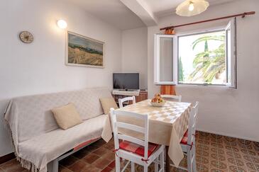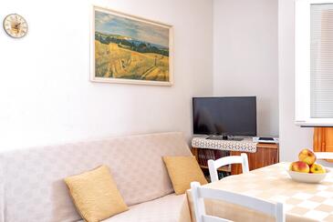 Ferienwohnung bietet Platz für 6 Gäste. Die Betten sind in Schlafzimmern, die es 2 gibt, und in Esszimmer, innerhalb einer Gesamtfläche von 45m2, angeordnet. Die Gäste haben eine eigene Terrasse zur Verfügung, auf der sie in warmen Sommernächten genießen können. Es ist erlaubt, Speisen auf dem Gemeinschafts-Grill vorzubereiten.