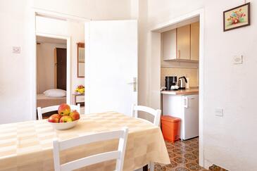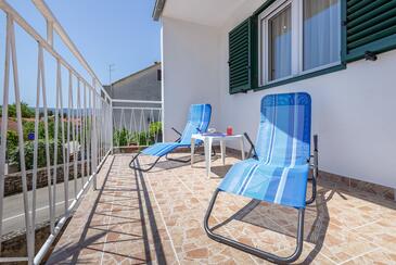 Ferienwohnung bietet Platz für 6 Gäste. Die Betten sind in Schlafzimmern, die es 2 gibt, und in Esszimmer, innerhalb einer Gesamtfläche von 45m2, angeordnet. Die Gäste haben eine eigene Terrasse zur Verfügung, auf der sie in warmen Sommernächten genießen können. Es ist erlaubt, Speisen auf dem Gemeinschafts-Grill vorzubereiten.