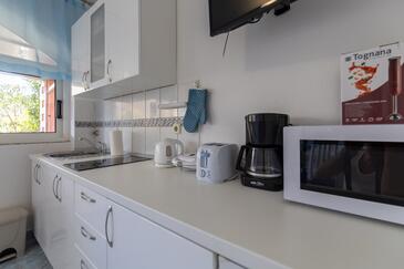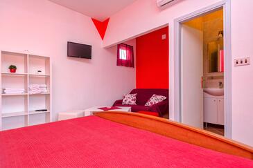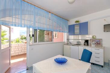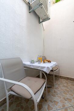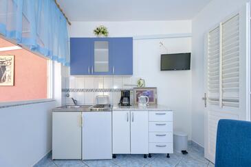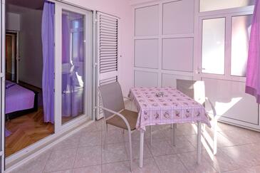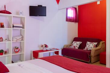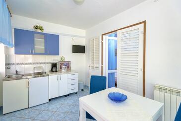 Ferienwohnung bietet Platz für 3 Gäste. Die Betten sind in Schlafzimmern, die es 1 gibt, innerhalb einer Gesamtfläche von 27m2, angeordnet. Die Gäste haben eine eigene Terrasse zur Verfügung, auf der sie in warmen Sommernächten genießen können. Es ist erlaubt, Speisen auf dem Gemeinschafts-Grill vorzubereiten.