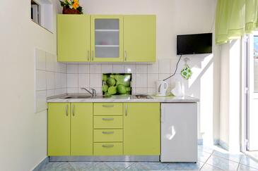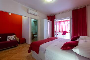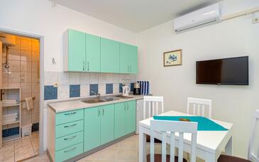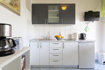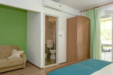Ferienwohnung bietet Platz für 3 Gäste. Die Betten sind in Schlafzimmern, die es 1 gibt, innerhalb einer Gesamtfläche von 27m2, angeordnet. Die Gäste haben eine eigene Terrasse zur Verfügung, auf der sie in warmen Sommernächten genießen können. Es ist erlaubt, Speisen auf dem Gemeinschafts-Grill vorzubereiten.