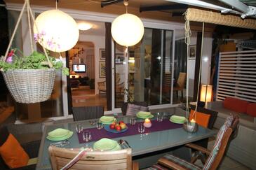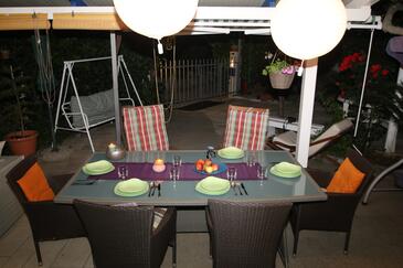Haus bietet Platz für 5 Gäste. Die Betten sind in Schlafzimmern, die es 3 gibt, innerhalb einer Gesamtfläche von 90m2, angeordnet. Die Gäste haben eine eigene Terrasse zur Verfügung, auf der sie in warmen Sommernächten genießen können. Das Haus bietet Meerblick. Für vollen Genuss und Entspannung gibt es einen privaten Grill für Gäste dieser Unterkunft. In der Unterkunftseinheit besteht die Möglichkeit des Mitbringens von Haustieren gegen Aufpreis. In der gebuchten Unterkunftseinheit zahlt man am Ort ein Depositum ( der Preis ist an der Internetseite angeführt ).
