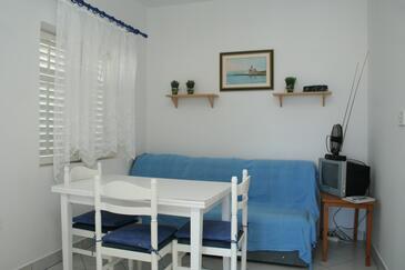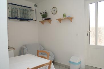 Ferienwohnung bietet Platz für 2 Gäste. Die Betten sind in Schlafzimmern, die es 1 gibt, innerhalb einer Gesamtfläche von 25m2, angeordnet. Die Gäste haben eine eigene Terrasse zur Verfügung, auf der sie in warmen Sommernächten genießen können. Das Apartment bietet Meerblick. Es ist erlaubt, Speisen auf dem Gemeinschafts-Grill vorzubereiten. In der Unterkunftseinheit besteht die Möglichkeit des Mitbringens von Haustieren gegen Aufpreis.
