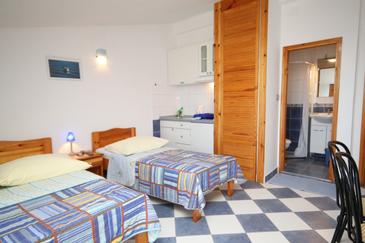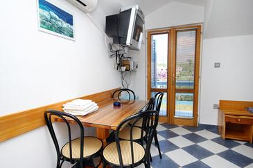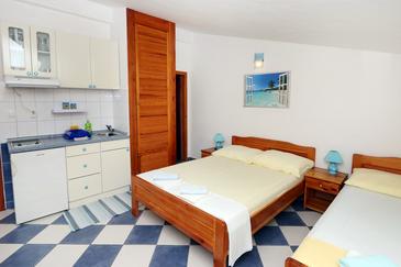 Ferienwohnung bietet Platz für 4 Gäste. Die Betten sind in Schlafzimmern, die es 1 gibt, und in Wohnzimmer, innerhalb einer Gesamtfläche von 32m2, angeordnet. Die Gäste haben einen eigenen Balkon zur Verfügung, auf der sie in warmen Sommernächten genießen können. Das Apartment bietet Meerblick. Es ist erlaubt, Speisen auf dem Gemeinschafts-Grill vorzubereiten. In der Unterkunftseinheit besteht die Möglichkeit des Mitbringens von Haustieren gegen Aufpreis.