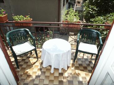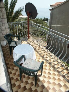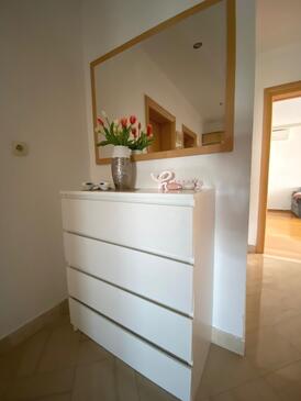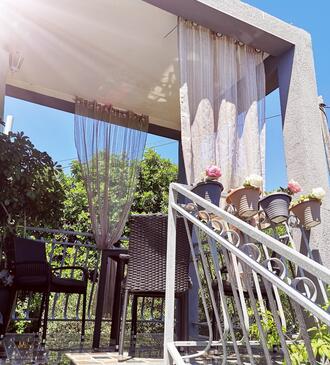 Ferienwohnung bietet Platz für 8 Gäste. Die Betten sind in Schlafzimmern, die es 4 gibt, innerhalb einer Gesamtfläche von 107m2, angeordnet. Die Gäste haben eine eigene Terrasse zur Verfügung, auf der sie in warmen Sommernächten genießen können. Das Apartment bietet Meerblick. Es ist erlaubt, Speisen auf dem Gemeinschafts-Grill vorzubereiten.