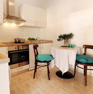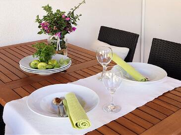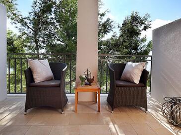 Ferienwohnung bietet Platz für 3 Gäste. Die Betten sind in Schlafzimmern, die es 1 gibt, innerhalb einer Gesamtfläche von 33m2, angeordnet. Die Gäste haben eine eigene Terrasse zur Verfügung, auf der sie in warmen Sommernächten genießen können. Das Apartment bietet Meerblick. Es ist erlaubt, Speisen auf dem Gemeinschafts-Grill vorzubereiten.