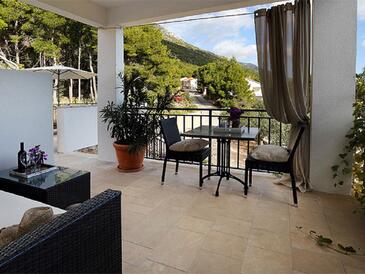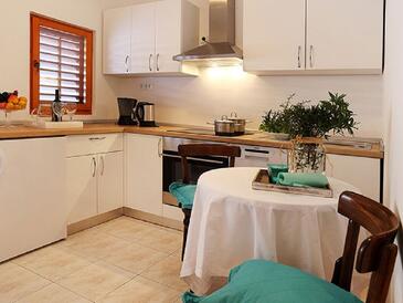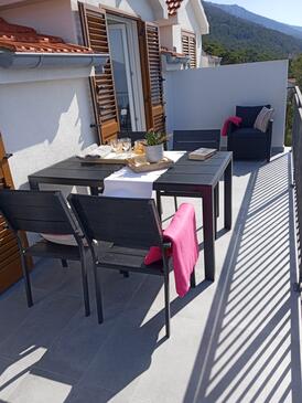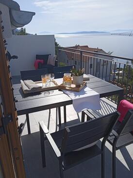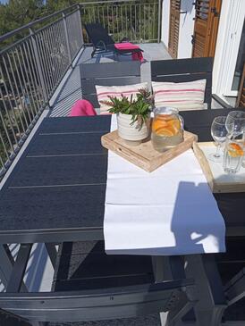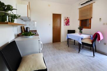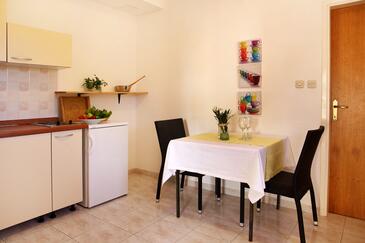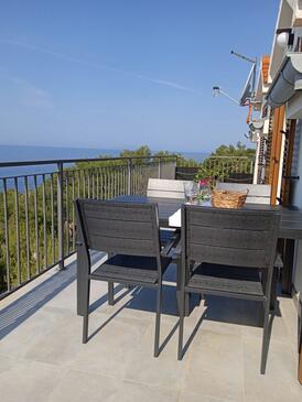 Ferienwohnung bietet Platz für 3 Gäste. Die Betten sind in Schlafzimmern, die es 1 gibt, innerhalb einer Gesamtfläche von 33m2, angeordnet. Die Gäste haben eine eigene Terrasse zur Verfügung, auf der sie in warmen Sommernächten genießen können. Das Apartment bietet Meerblick. Es ist erlaubt, Speisen auf dem Gemeinschafts-Grill vorzubereiten.