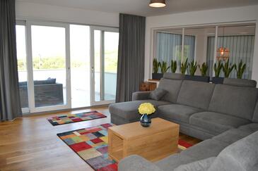 Haus bietet Platz für 8 Gäste. Die Betten sind in Schlafzimmern, die es 4 gibt, innerhalb einer Gesamtfläche von 192m2, angeordnet. Die Gäste haben eine eigene Terrasse zur Verfügung, auf der sie in warmen Sommernächten genießen können. Das Haus bietet Meerblick. Für vollen Genuss und Entspannung gibt es einen privaten Grill für Gäste dieser Unterkunft.