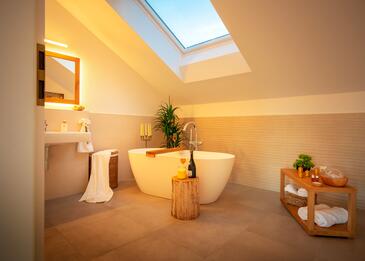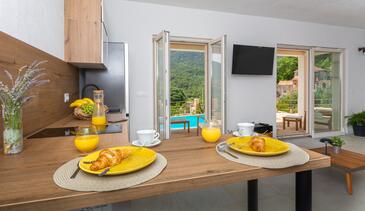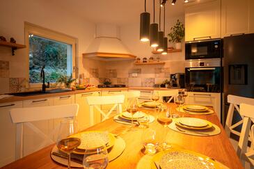 Haus bietet Platz für 10 Gäste. Die Betten sind in Schlafzimmern, die es 4 gibt, innerhalb einer Gesamtfläche von 247m2, angeordnet. Die Gäste haben eine eigene Terrasse zur Verfügung, auf der sie in warmen Sommernächten genießen können. Das Haus bietet Meerblick. Für vollen Genuss und Entspannung gibt es einen privaten Grill für Gäste dieser Unterkunft. Während ihres Aufenthalts können sich Gäste im privaten Schwimmbad entspannen. In der Unterkunftseinheit besteht die Möglichkeit des Mitbringens von Haustieren gegen Aufpreis.