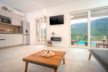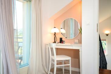 Haus bietet Platz für 10 Gäste. Die Betten sind in Schlafzimmern, die es 4 gibt, innerhalb einer Gesamtfläche von 247m2, angeordnet. Die Gäste haben eine eigene Terrasse zur Verfügung, auf der sie in warmen Sommernächten genießen können. Das Haus bietet Meerblick. Für vollen Genuss und Entspannung gibt es einen privaten Grill für Gäste dieser Unterkunft. Während ihres Aufenthalts können sich Gäste im privaten Schwimmbad entspannen. In der Unterkunftseinheit besteht die Möglichkeit des Mitbringens von Haustieren gegen Aufpreis.