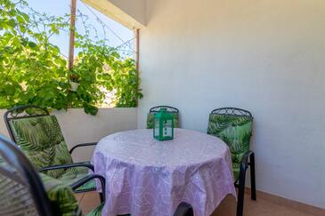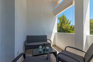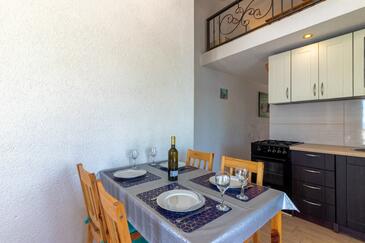 Ferienwohnung bietet Platz für 8 Gäste. Die Betten sind in Schlafzimmern, die es 4 gibt, innerhalb einer Gesamtfläche von 70m2, angeordnet. Die Gäste haben eine eigene Terrasse zur Verfügung, auf der sie in warmen Sommernächten genießen können. Das Apartment bietet Meerblick. Es ist erlaubt, Speisen auf dem Gemeinschafts-Grill vorzubereiten. In der Unterkunftseinheit besteht die Möglichkeit des Mitbringens von Haustieren, und die Dienstleistung ist im Preis der Unterkunft enthalten.
